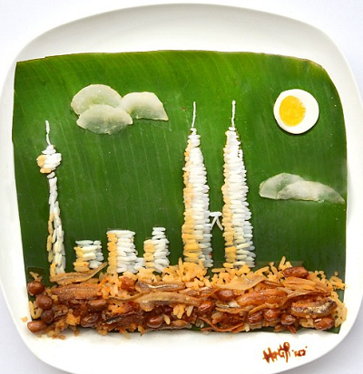 Assembled from nasi lemak (our iconic dish) ingredients. And if you are wondering what nasi lemak is, read here.