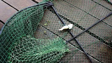 A squid is tied to the centre of the net and used as bait