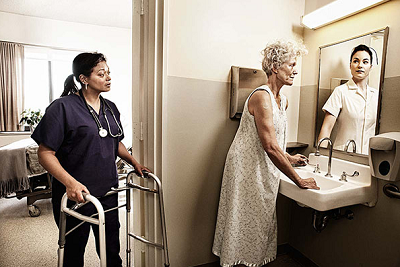 A long-retired nurse catches sight of her self in a bathroom mirror but instead of seeing grey hair and wrinkled skin, the reflection of an attractive young lady stares back.