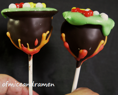 I saw these witch cauldron cake pops on Pint Sized Baker and couldn't resist making them though we don't celebrate Halloween over here. Aren't these adorable and Halloweeny?