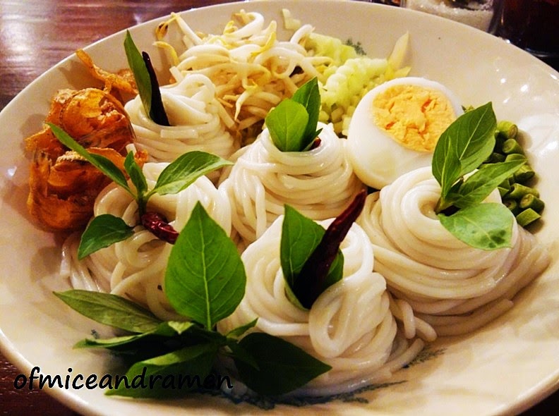 I was at a Thai restaurant when I saw this weird looking dish on the table behind me. I checked the menu and learned that the dish was called Kanom Jeen Nam Ya Pla. The name is quite a mouthful! Basically, it is a southern Thai cuisine of rice noodles served with a broth of rich creamy fish curry. In Malaysia, we have something quite similar called Thai Laksa though it doesn't taste quite as delish or look half as fancy as this.